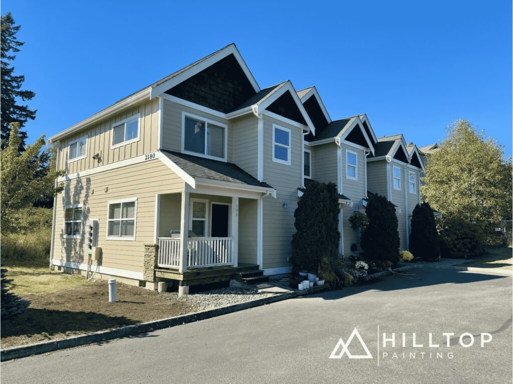 Hilltop Painting completed an exterior repaint for a multi-family fourplex complex located in Ferndale, Washington. The scope of work included thorough surface preparation such as pressure washing, scraping, sanding, caulking, and replacement of rotted trim to ensure a smooth and durable finish.