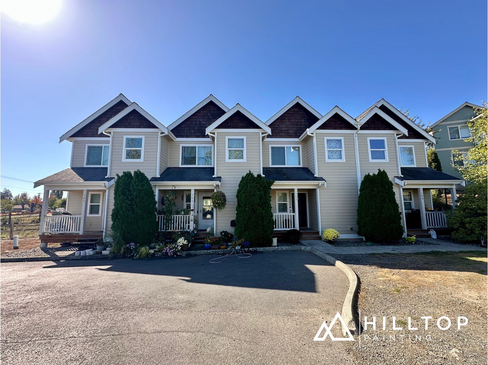This project gave the fourplex a refreshed appearance with enhanced curb appeal and long-term protection, completed on schedule with Hilltop Painting’s commitment to quality craftsmanship and attention to detail.