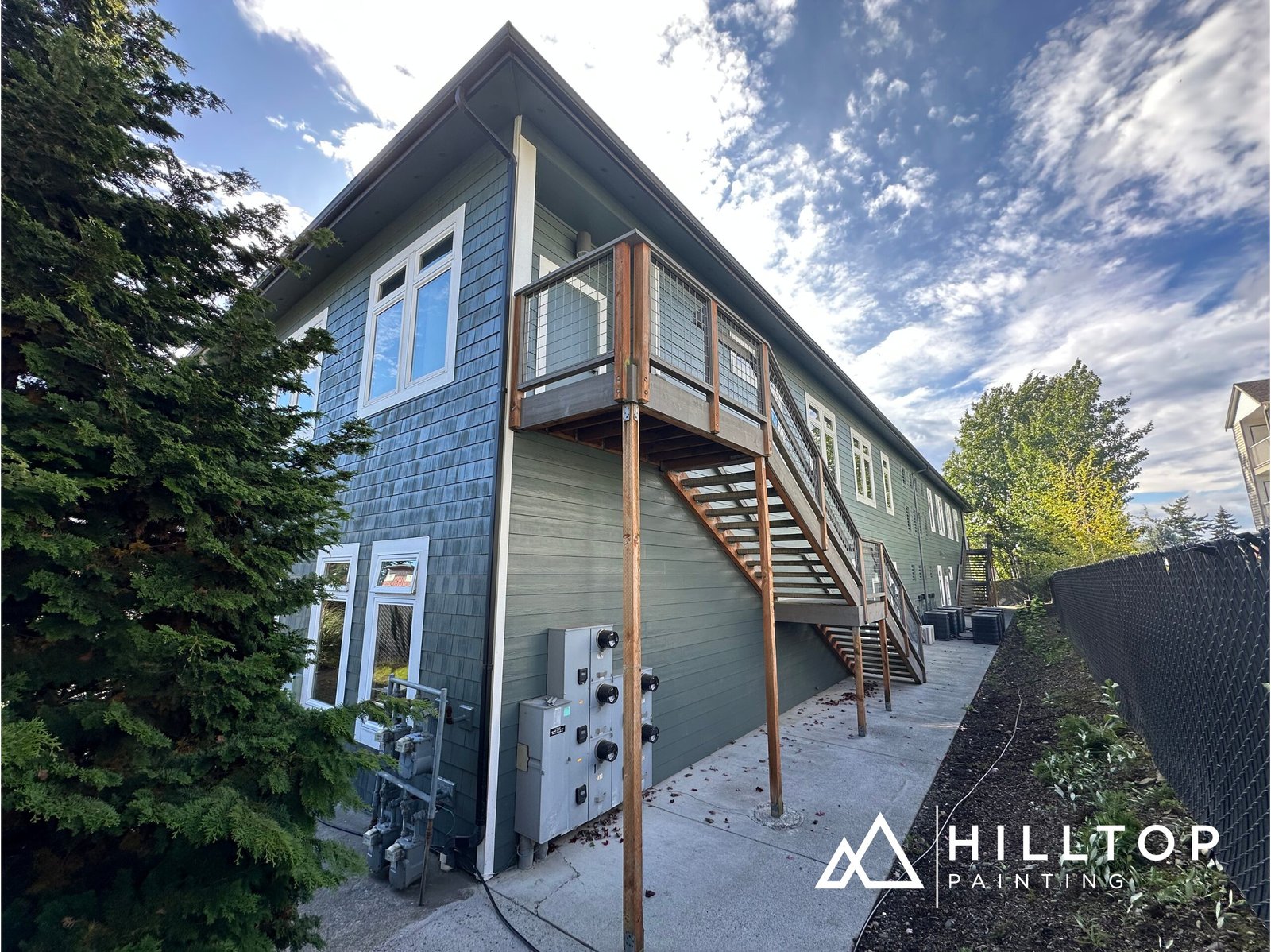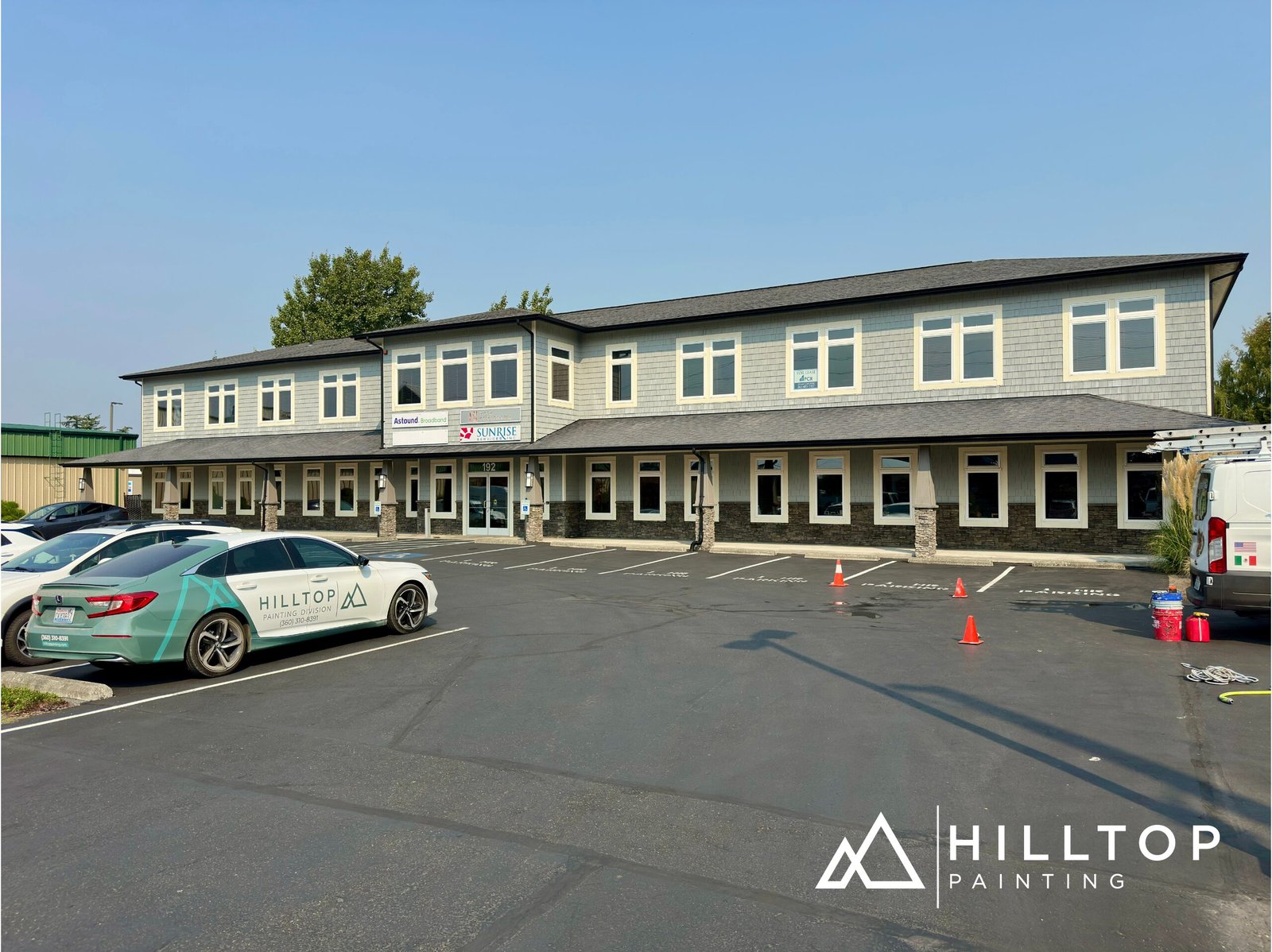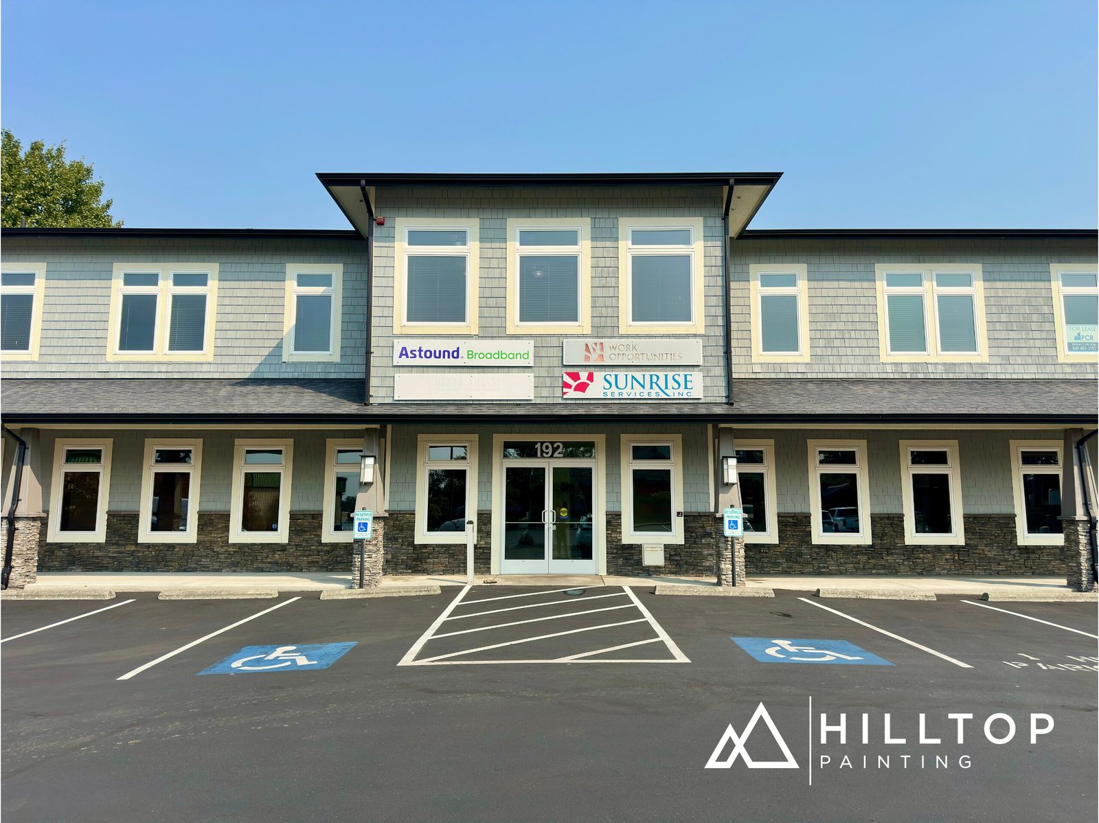 This project was completed on schedule and delivered a modern, refreshed appearance that enhances the building’s curb appeal and longevity—another example of Hilltop Painting’s commitment to quality and professionalism in commercial projects.