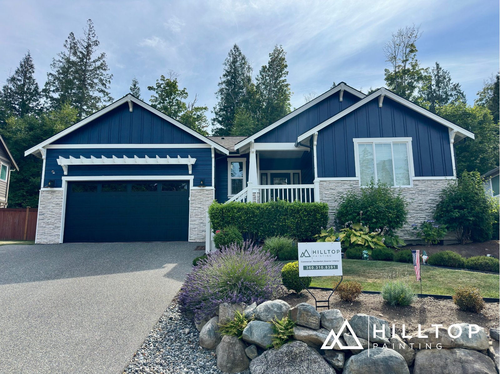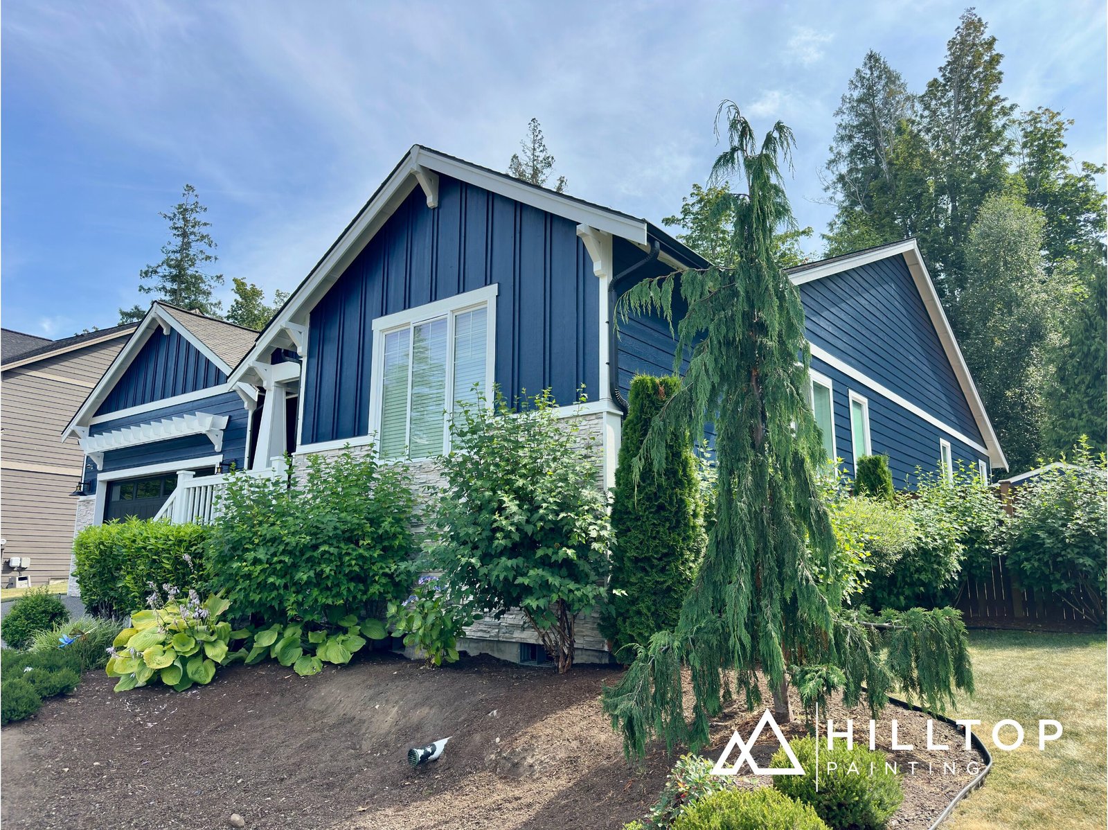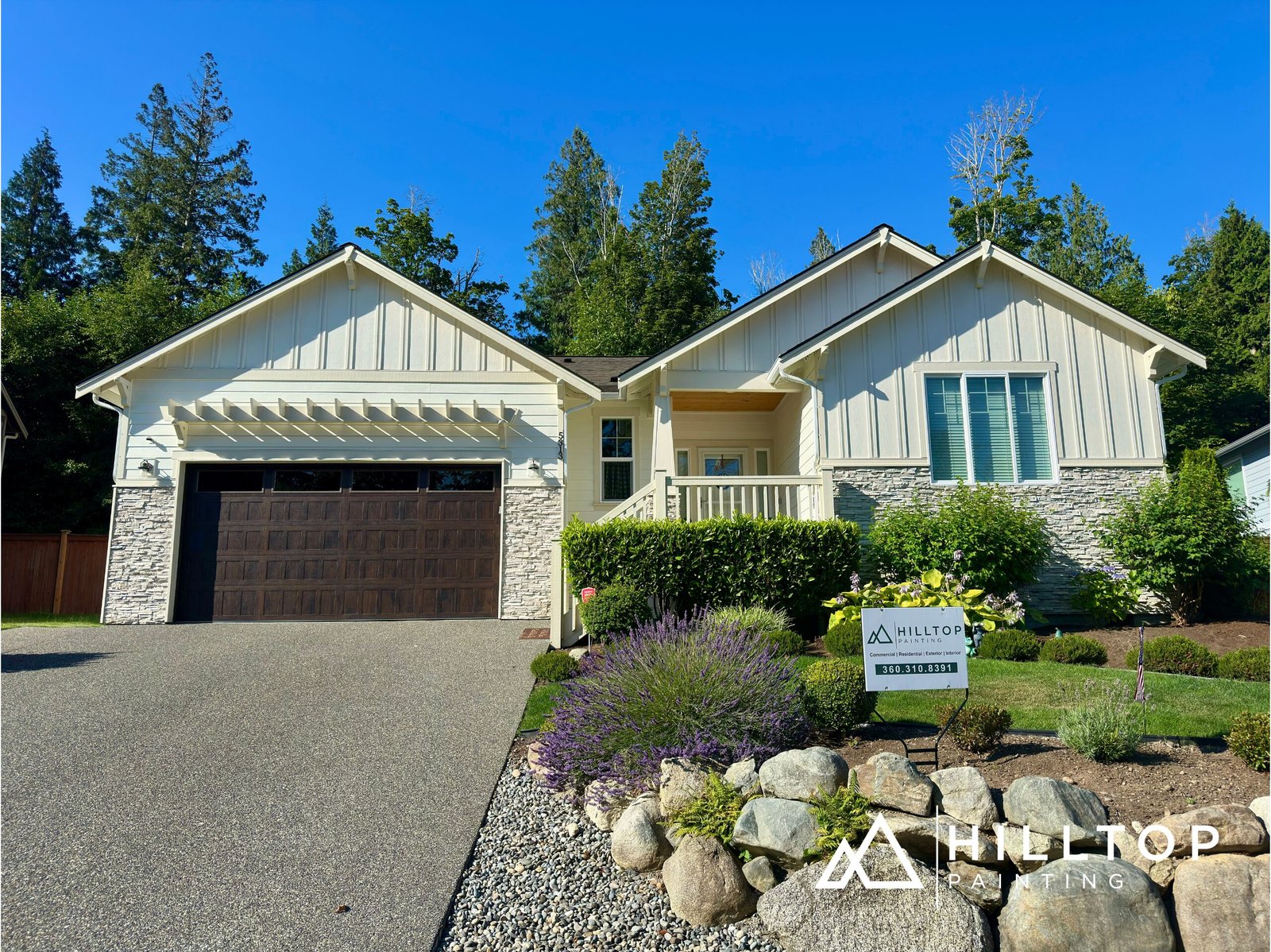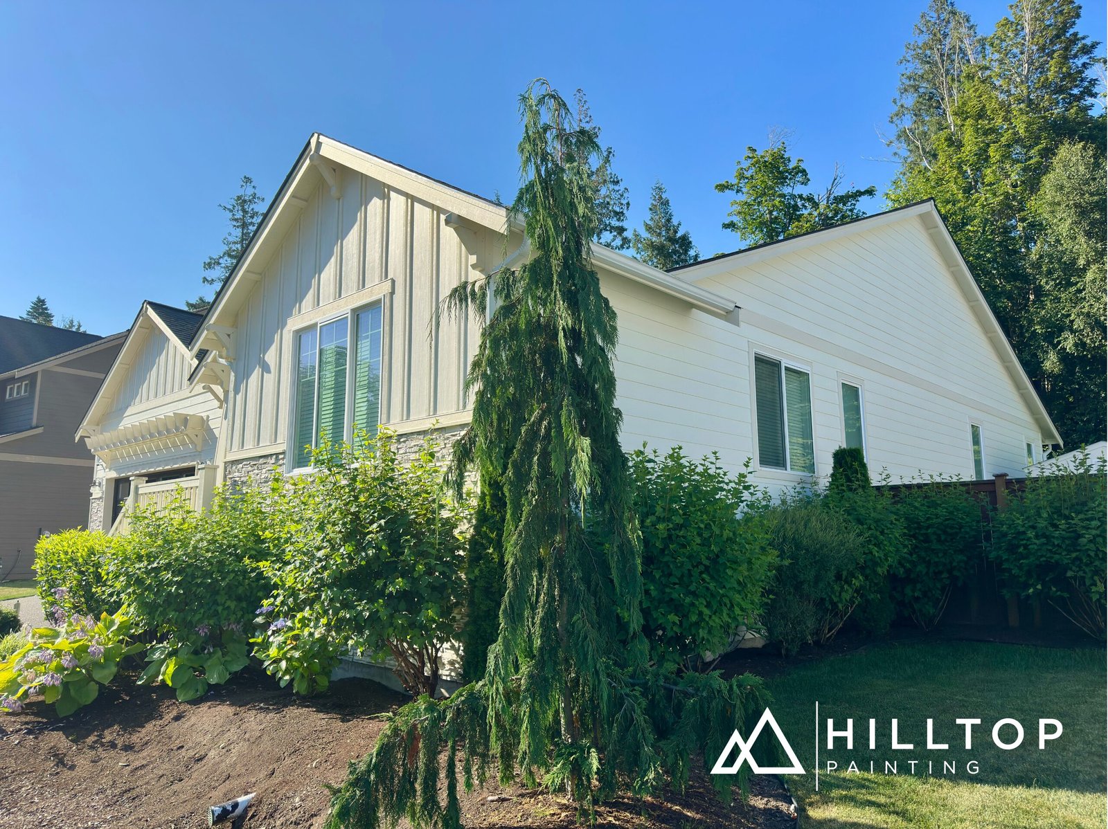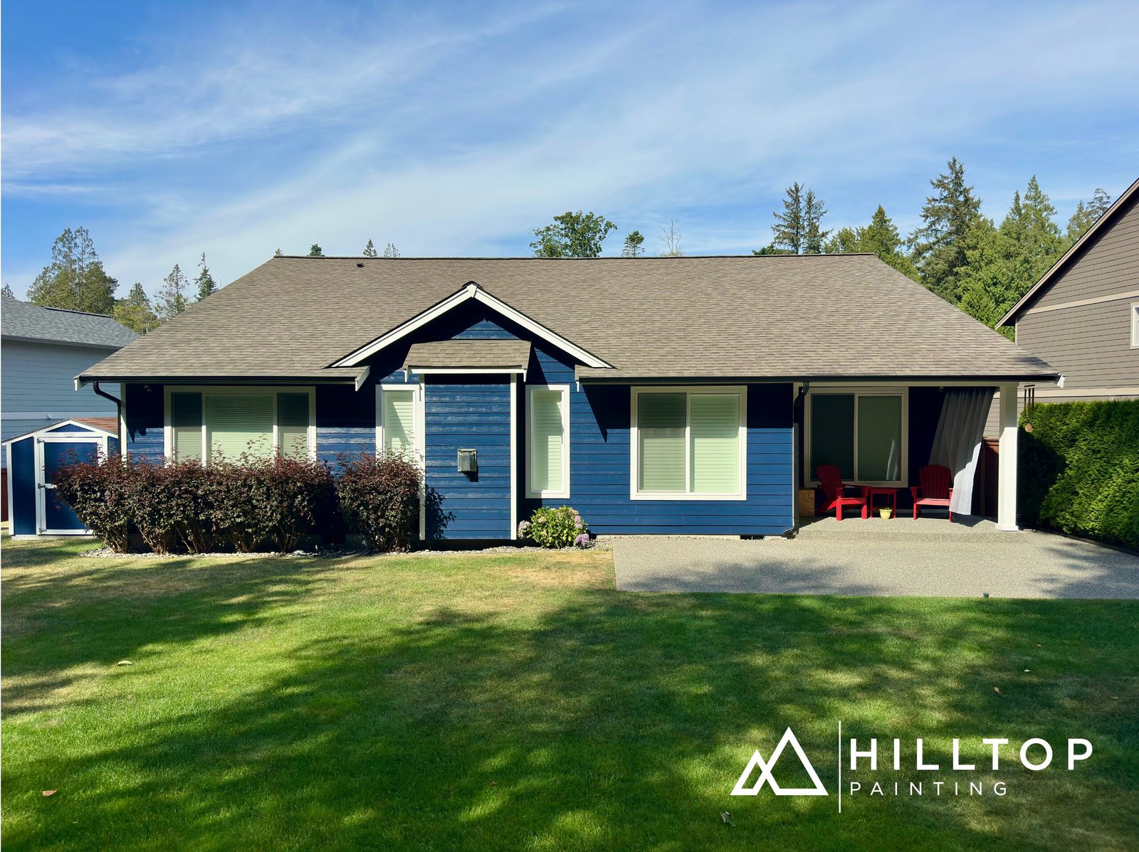 Hilltop Painting recently completed a full exterior and partial interior repaint for a residential property in Blaine, WA. The exterior transformation featured Sherwin-Williams Super Paint in a durable satin finish, providing a clean, lasting look with premium weather resistance.