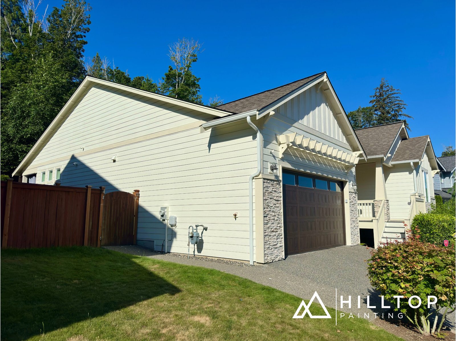 In addition to the exterior work, Hilltop Painting completed two interior bedrooms and color-matched the kitchen ceiling for a seamless finish throughout the home.