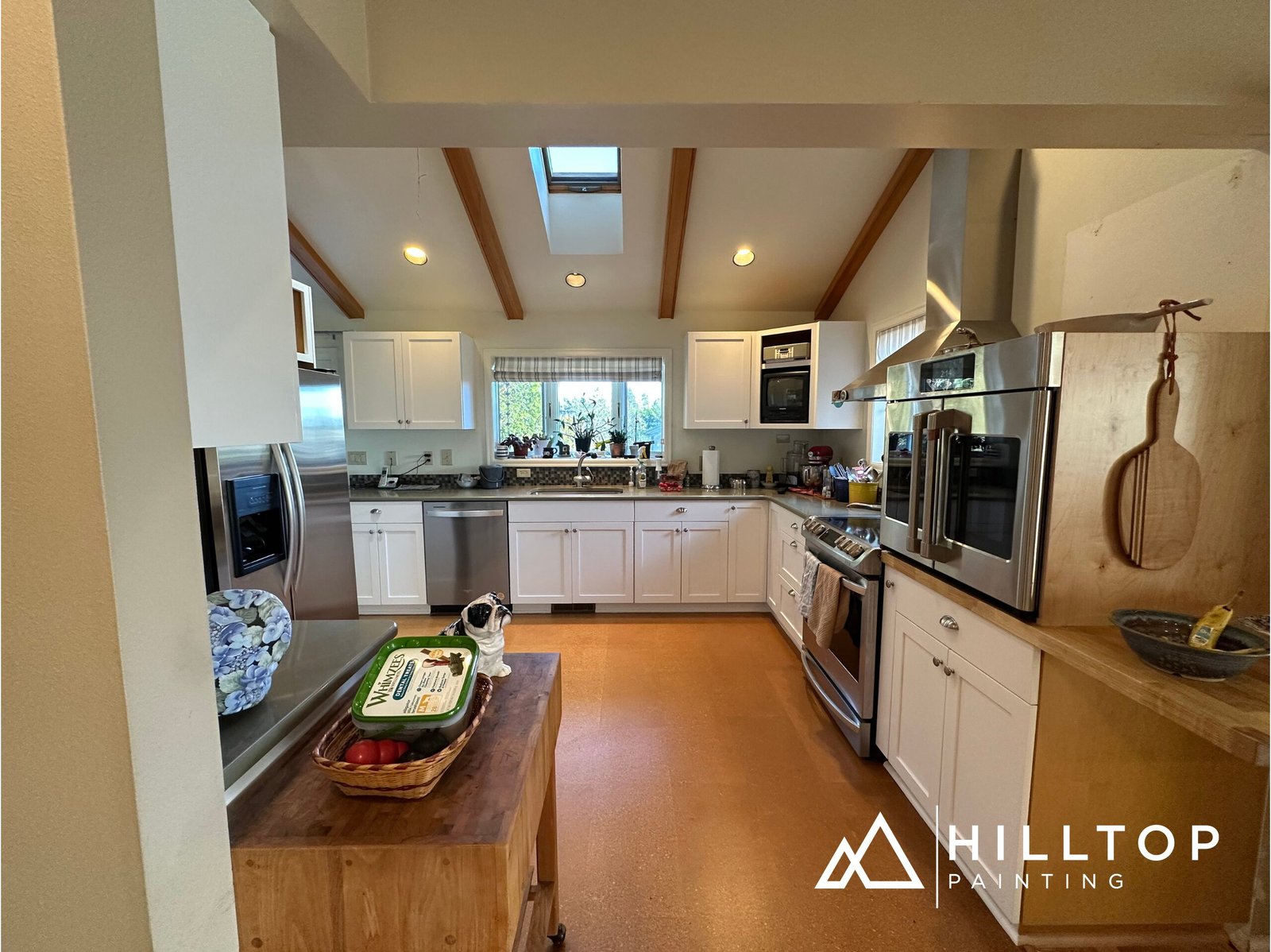 Hilltop Painting recently completed a professional cabinet painting project in Ferndale, WA. The work focused on transforming both the main kitchen and bar area with a high-quality finish using Sherwin-Williams Emerald Urethane Enamel for exceptional durability and smoothness.