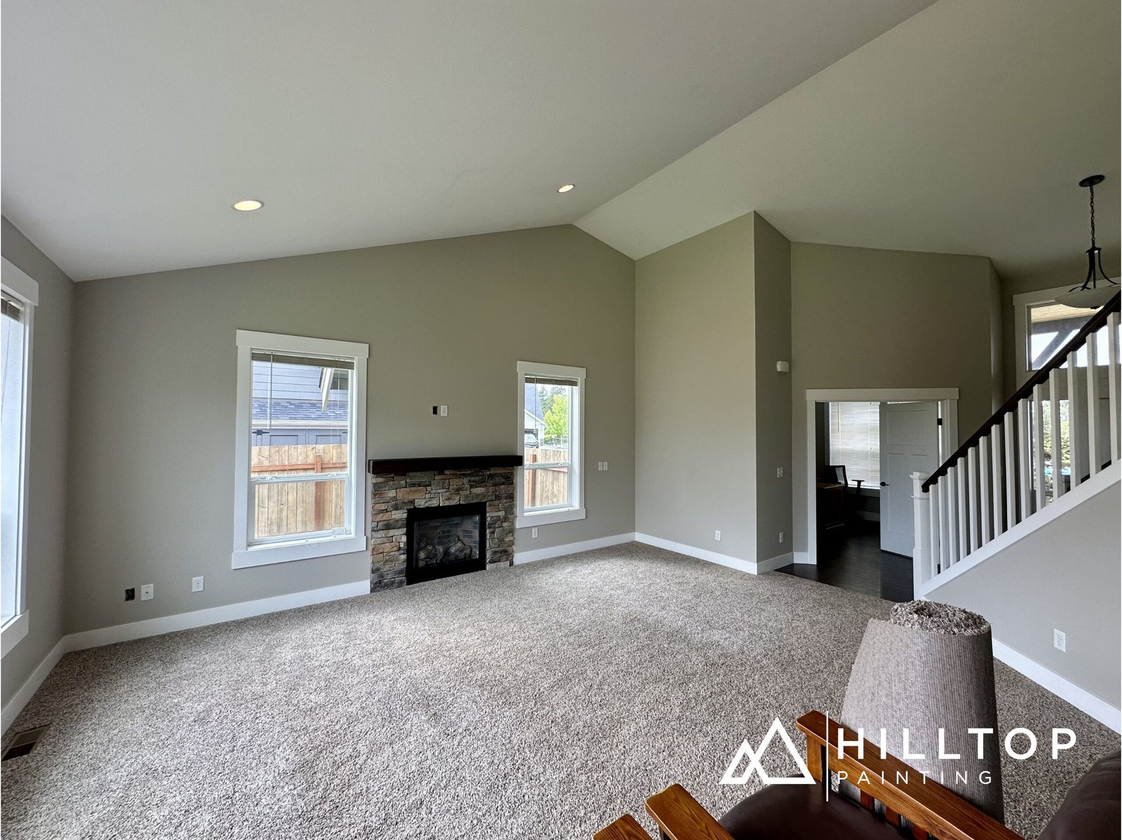 Our team handled full prep including patching, sanding, and protecting all surfaces before applying a smooth, even two-coat finish throughout the home. The result is a consistent, high-quality look with no visible transitions or imperfections.